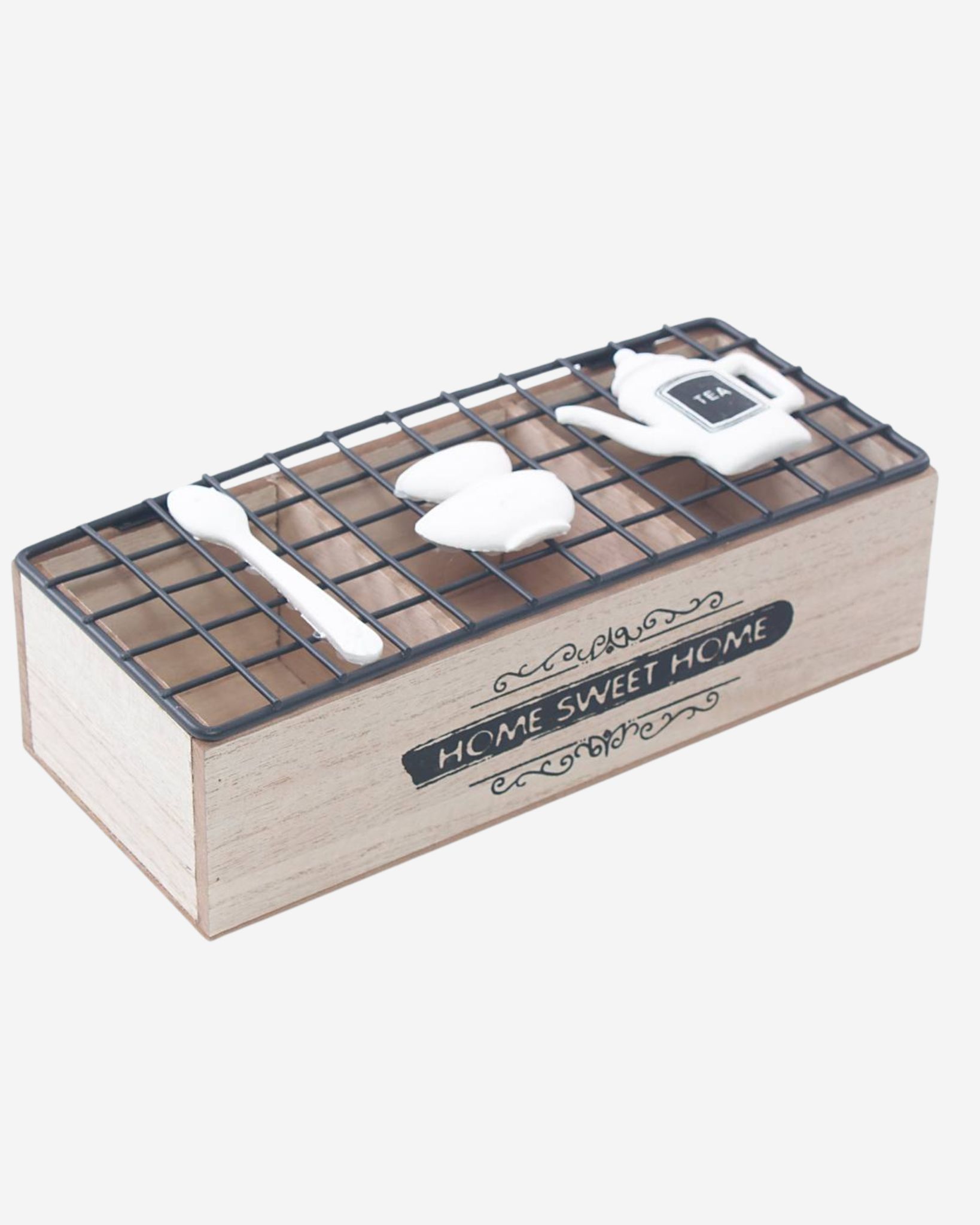 Se stai cercando un complemento che non sia solo pratico ma anche decorativo, la scatola porta tisane è l’alleato perfetto per te. Un pezzo semplice, versatile e molto funzionale con cui la tua dispensa apparirà sempre pulita e in ordine . Ha tre scomparti in modo da poter riporre e ordinare le tisane e i té. Realizzato in legno di abete e metallo, questa scatola è resistente e presenta un design dalle linee pulite che dona eleganza rustica.