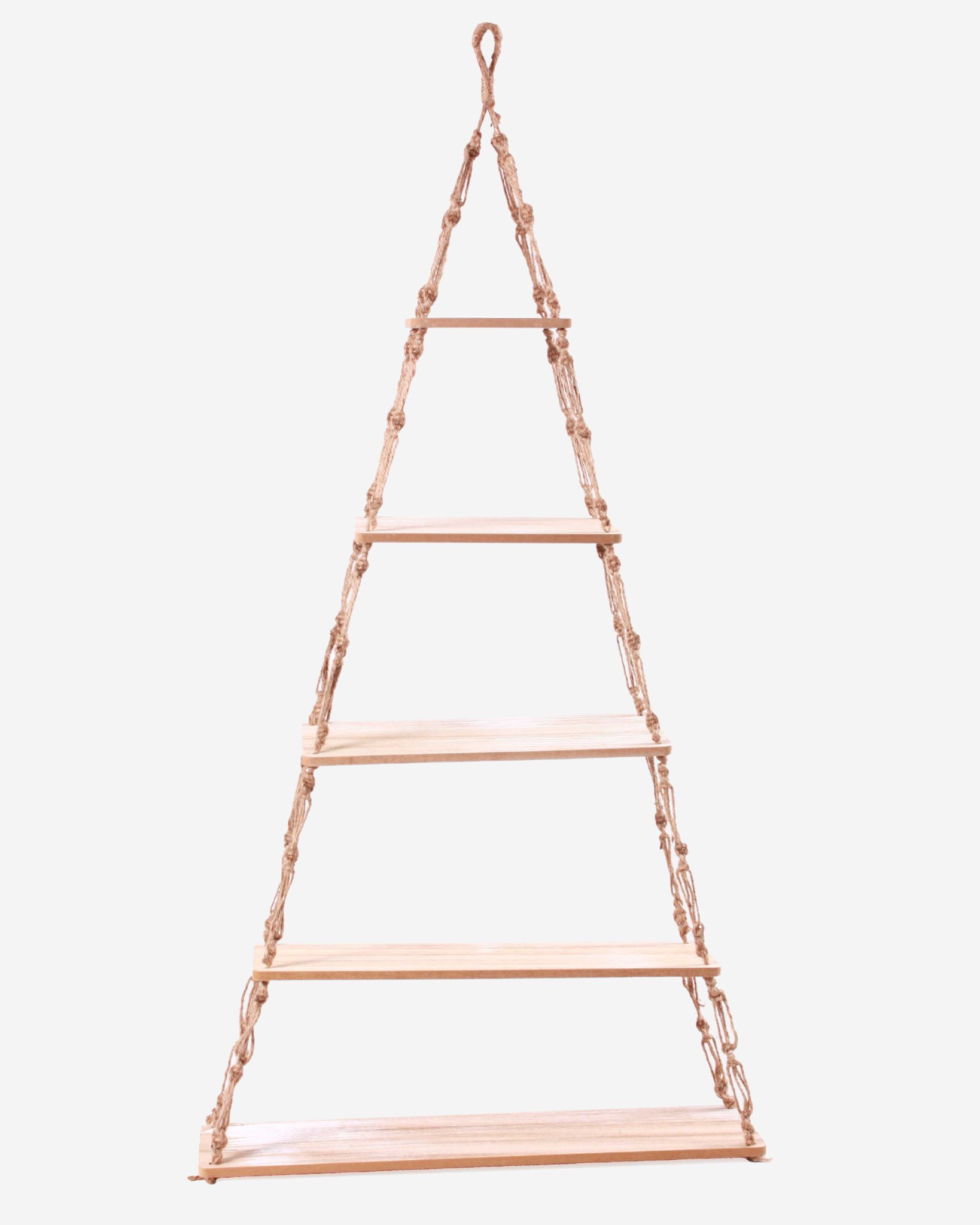 Optiamo per mobili di design che siano eleganti e versatili, ecco perché abbiamo scelto la mensola albero natalizio a muro in legno e corda. Questa mensola da parete è realizzata in legno, un materiale robusto, che gli conferisce resistenza. Dispone di corde in juta per una finitura in puro stile naturale . Comprende cinque ripiani a scalare dove potrai riporre i tuoi oggetti e mantenere così l’ordine in casa. Non include viti per l’ancoraggio al muro.