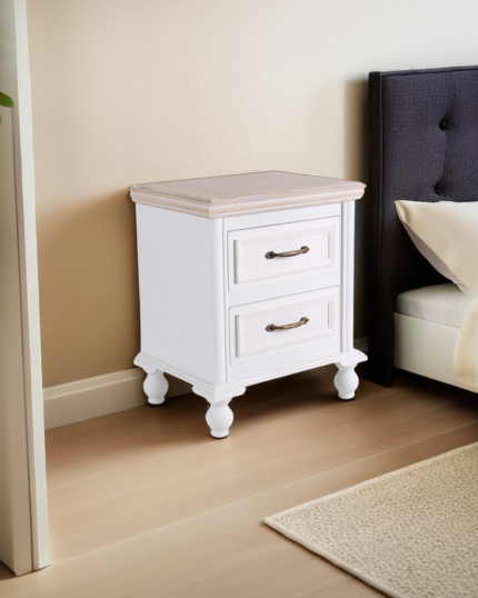 Il comodino “Sophia” è una soluzione elegante e funzionale per arricchire qualsiasi camera da letto in stile classico o shabby chic. Realizzato in legno di pino con una finitura bianca opaca, dona un tocco di luminosità e pulizia all’ambiente. I tre cassetti offrono uno spazio comodo per riporre oggetti personali o accessori quotidiani. Il top effetto legno naturale aggiunge un caldo contrasto, mentre le maniglie in ferro dal gusto classico completano il design con carattere.