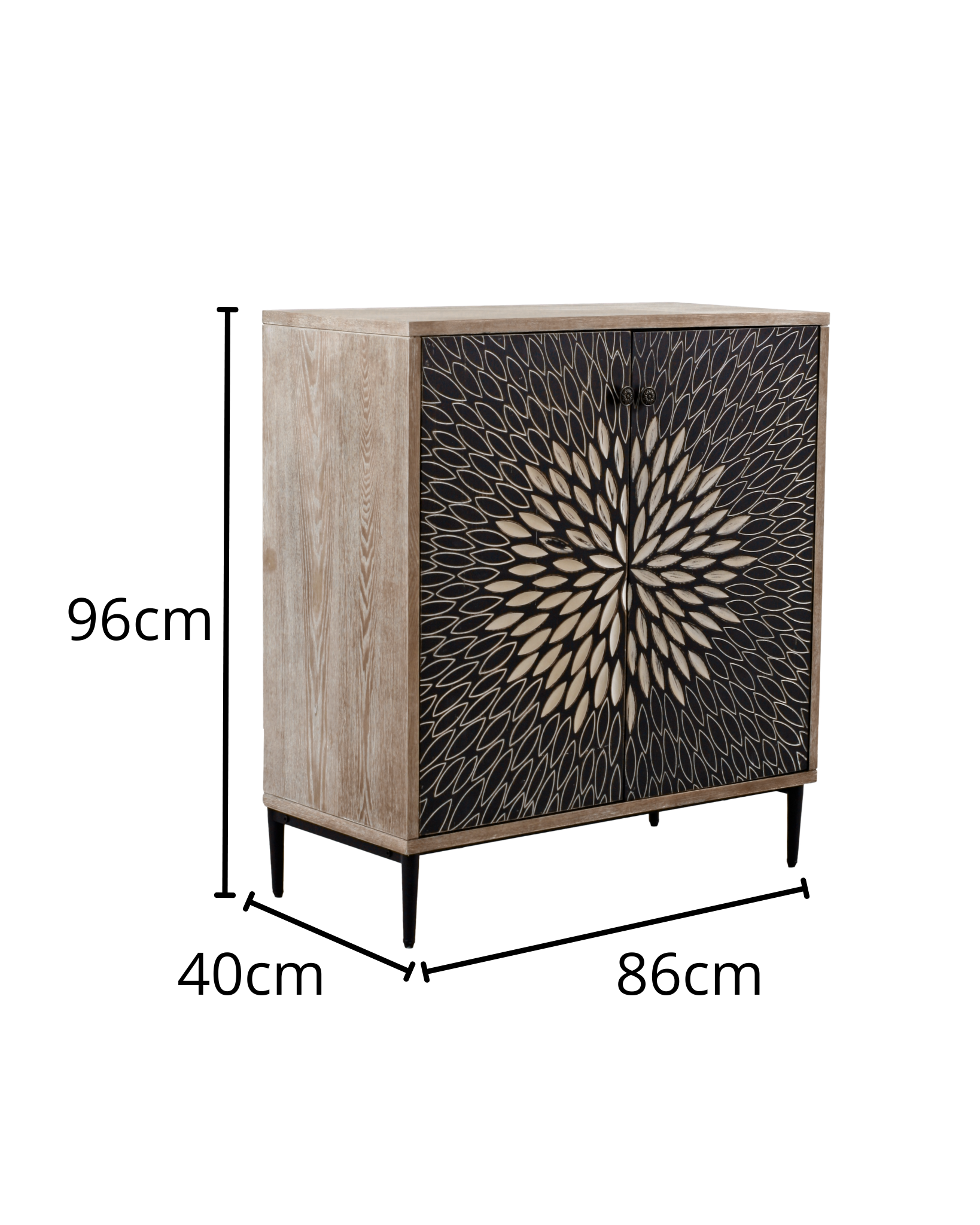 La credenza è dotata di due ante che nascondono ampi vani interni, perfetti per riporre oggetti nel soggiorno o nella sala da pranzo, mantenendo l’ambiente ordinato e organizzato. La sua versatilità ti permette di abbinarla facilmente agli altri mobili della collezione Bangkok, creando un ambiente armonioso e dallo stile unico.