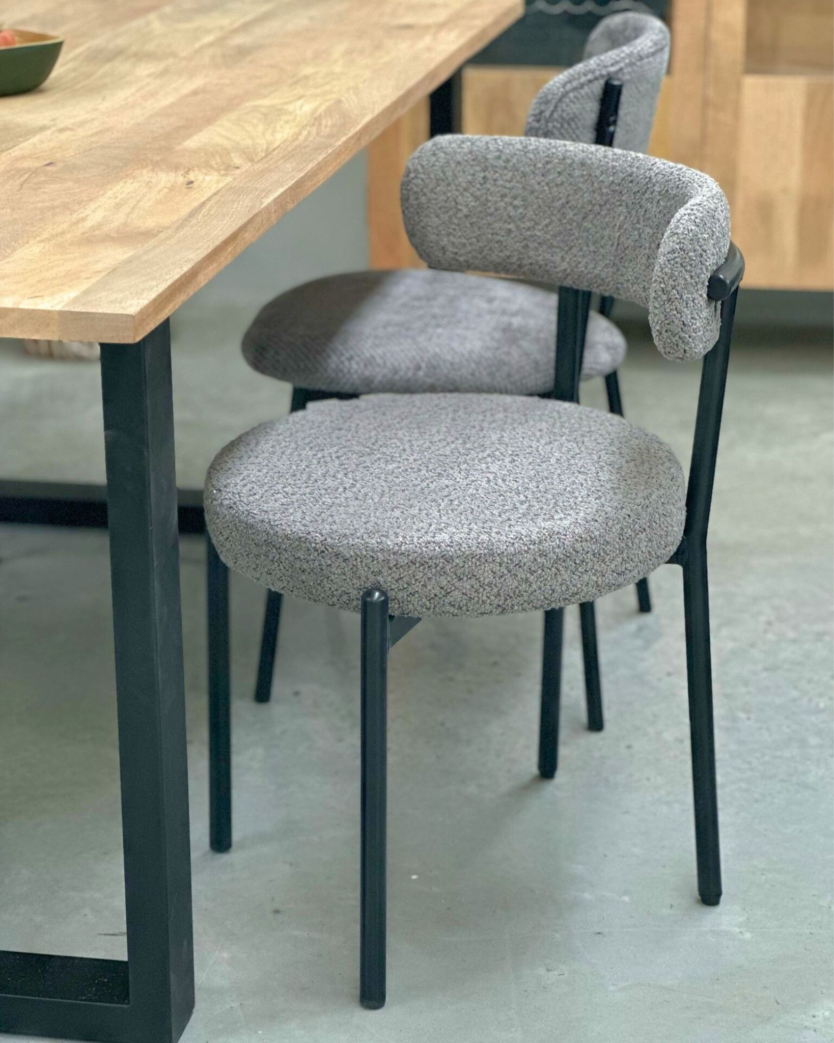 La sedia da pranzo Gaia è la scelta perfetta per chi cerca un arredo moderno e vivace. Il suo rivestimento in tessuto bouclé grigio dona un tocco di eleganza a qualsiasi sala da pranzo o spazio conviviale, mentre le gambe in metallo nero garantiscono robustezza e stabilità, creando un contrasto di stile accattivante. Il poggia schiena curvo offre un comfort ottimale, rendendola perfetta per lunghi pranzi o cene. Grazie al suo design, Gaia si adatta facilmente a diversi stili di arredamento.