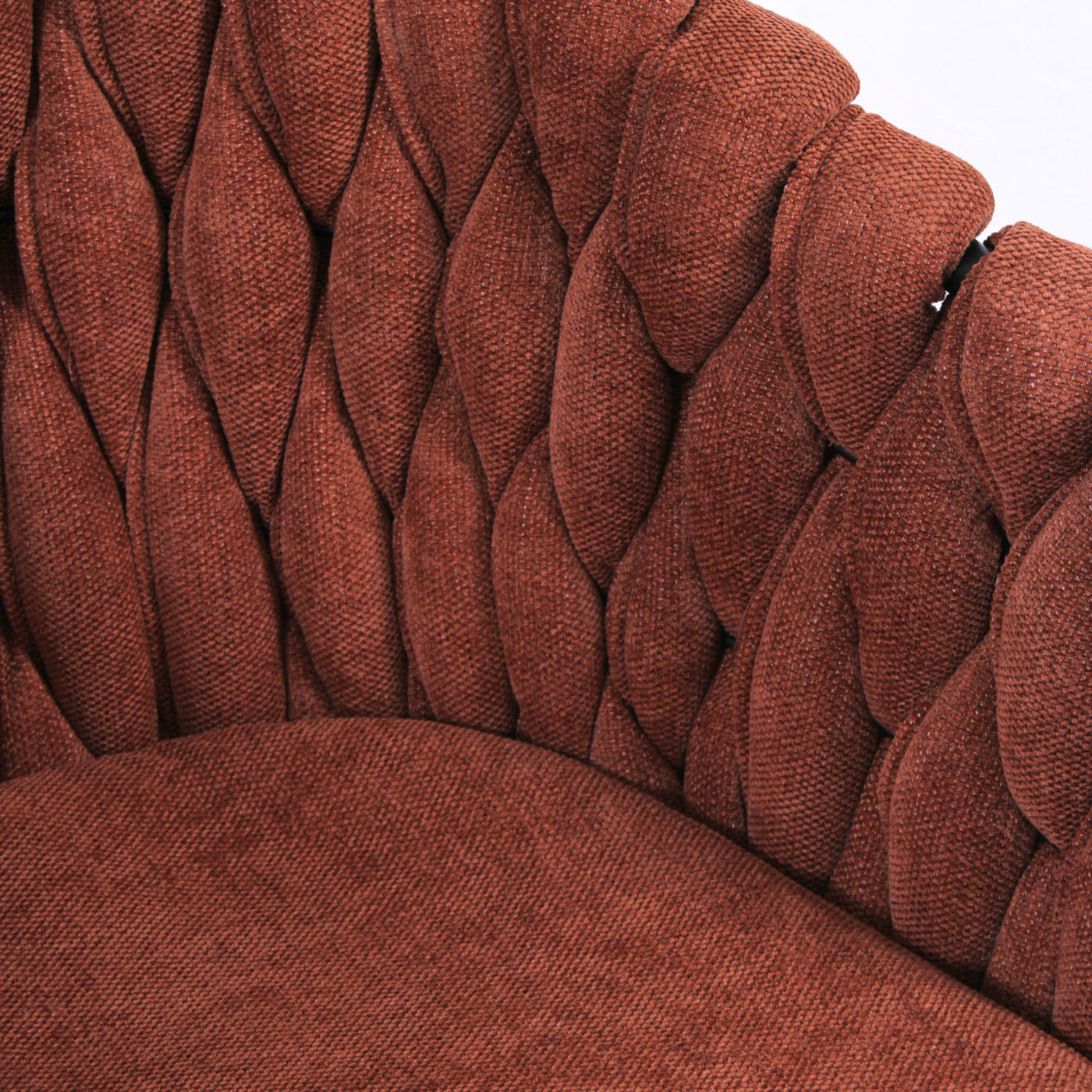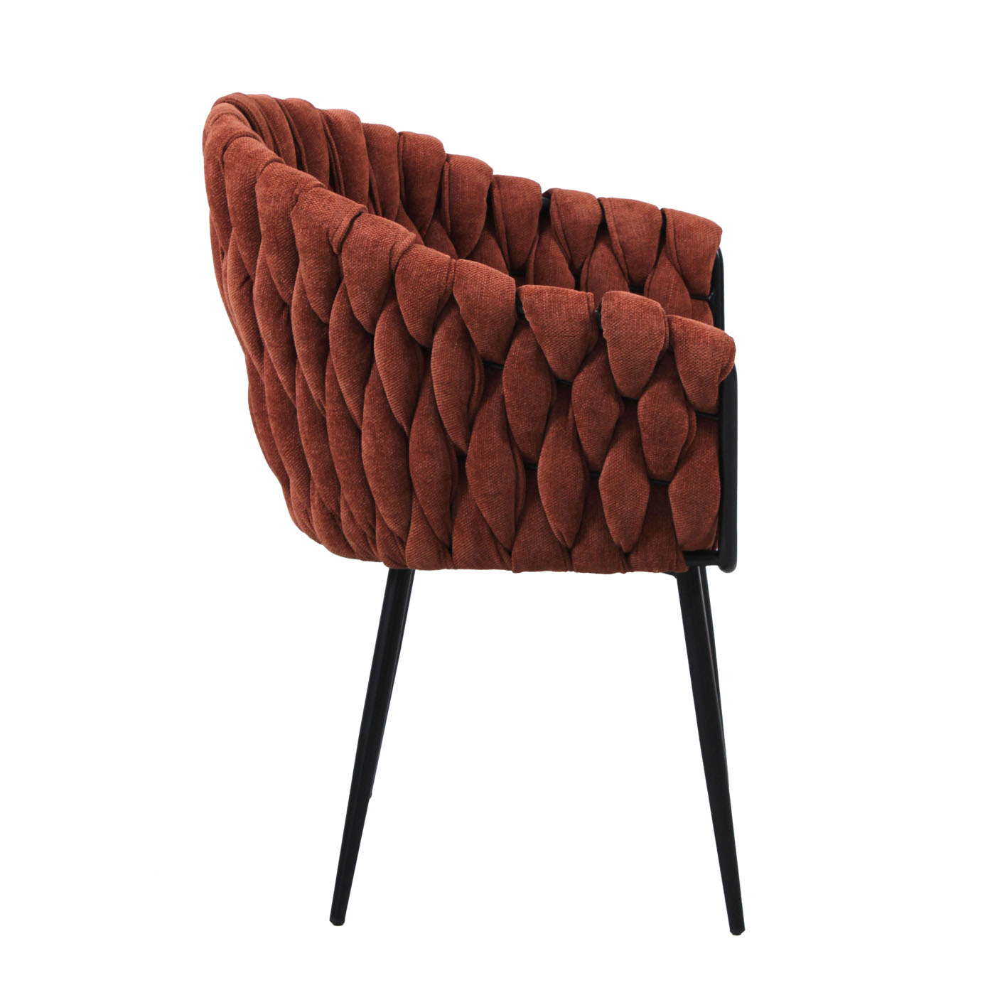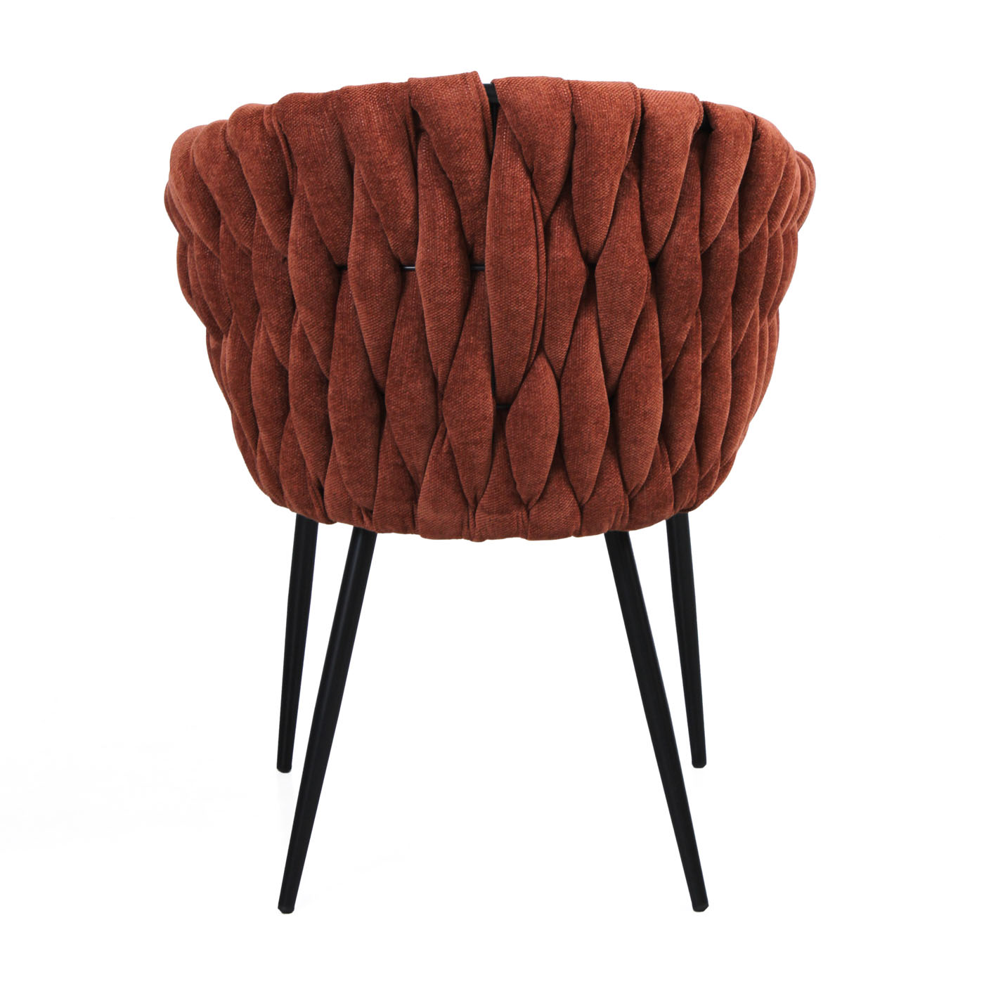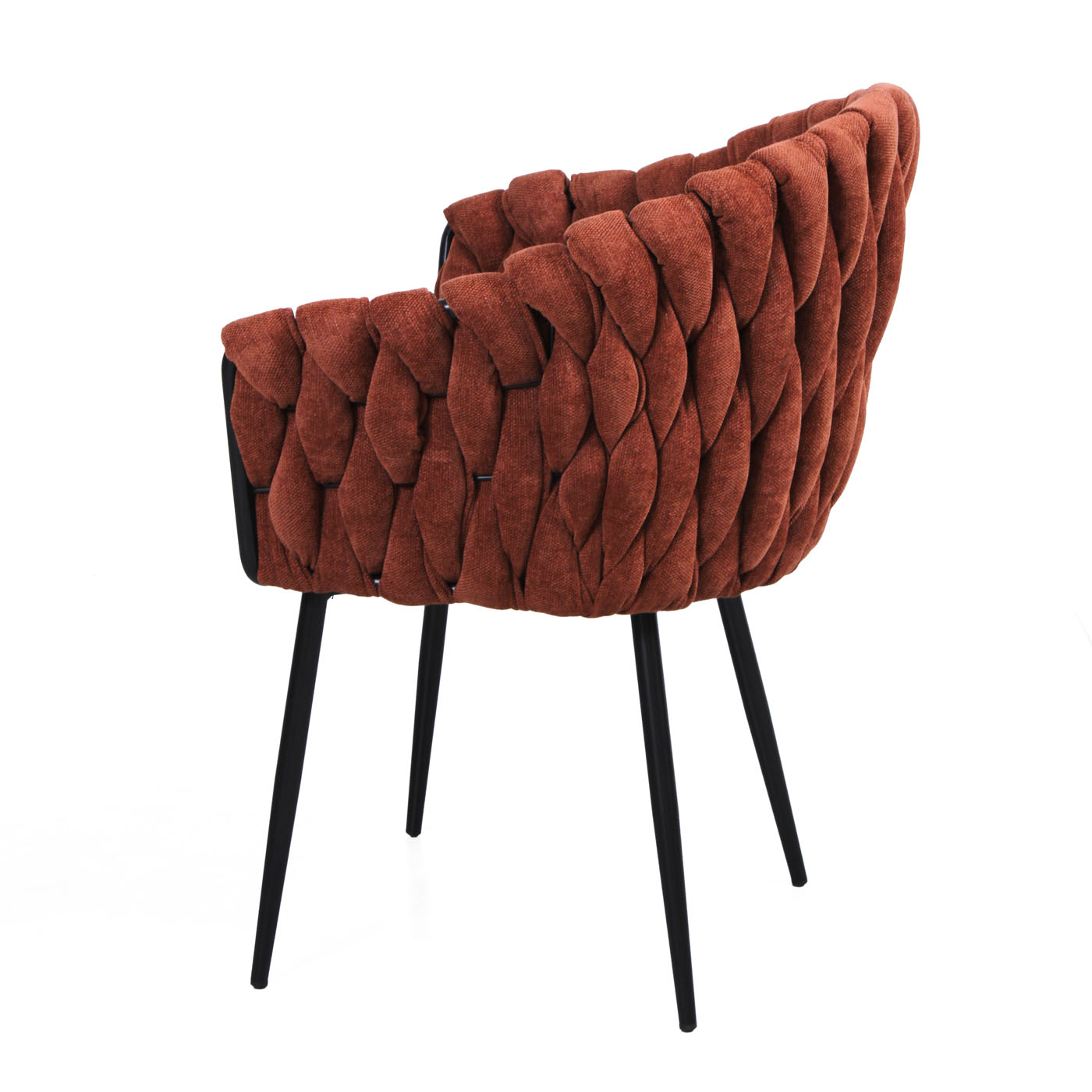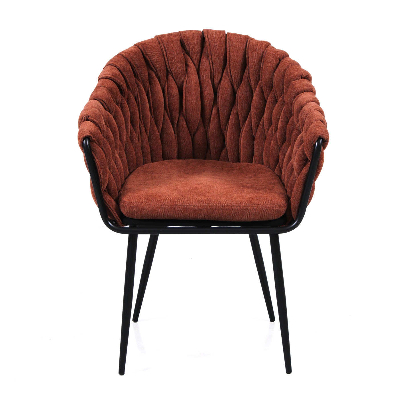 Se cerchi una sedia da pranzo che non passi inosservata, Maia è la scelta perfetta! Il rivestimento in tessuto arancione scuro, arricchito da dettagli nello schienale e nei braccioli, crea un piacevole mix di texture che conferisce alla poltrona un look accattivante e originale, offrendoti nel contempo una seduta morbida e super confortevole. Le gambe in metallo nero, oltre a dare un tocco di stile industrial chic, garantiscono stabilità e resistenza, perfette per accompagnarti nei tuoi momenti di relax. L’assemblaggio è semplice e veloce, così potrai goderti la tua nuova poltrona in pochissimo tempo!