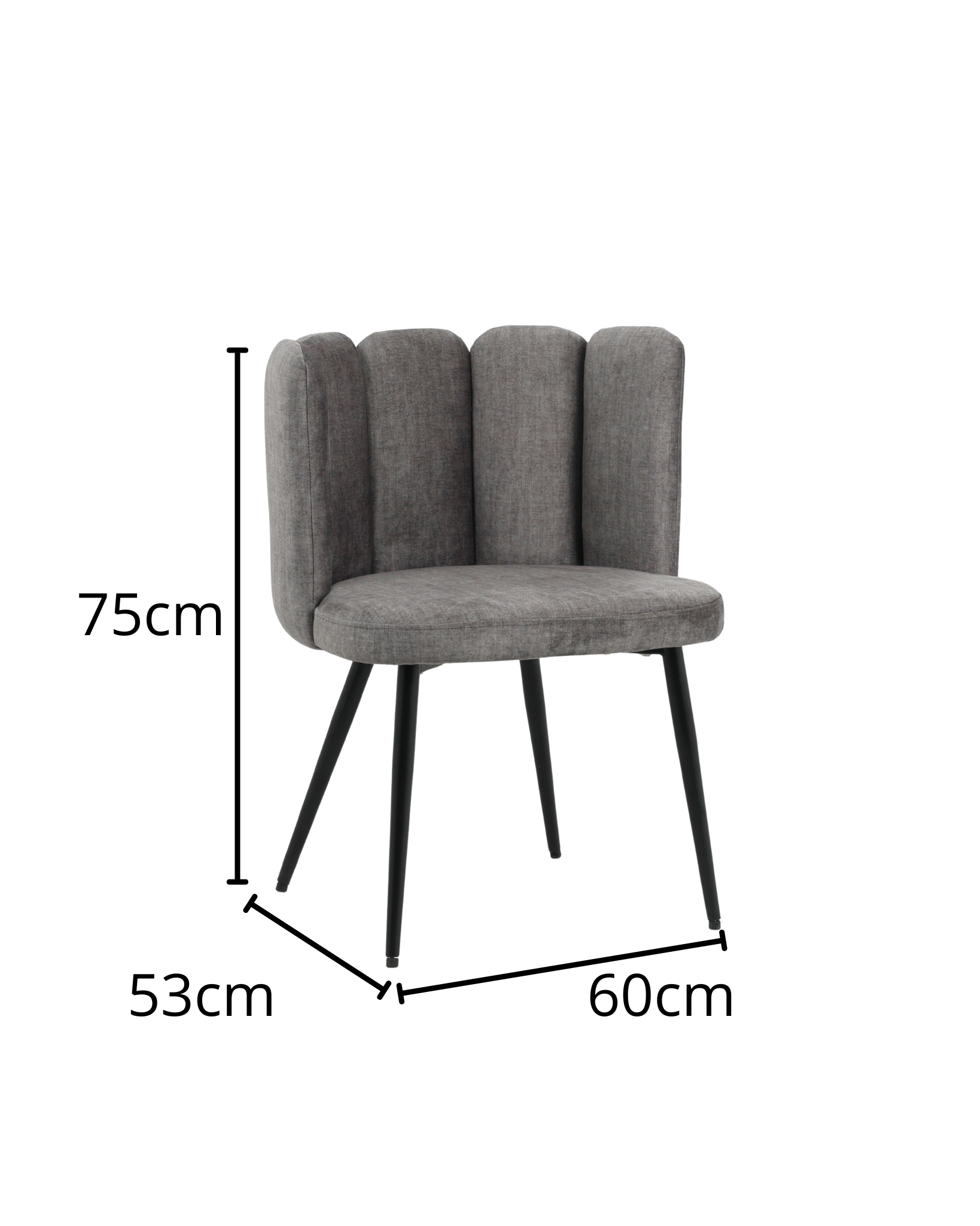 Rinnova lo stile della tua sala da pranzo o soggiorno e dona un’aria più glamour e moderna con la sedia da pranzo in velluto grigio “Elsa”. È realizzata con una seduta in poliestere con finitura in velluto e resistenti gambe in metallo nero. Il sistema di fissaggio delle gambe Cross System garantisce una maggiore stabilità alla struttura. Il suo design avvolgente la rende una sedia comoda, ideale per godersi lunghi momenti di relax.