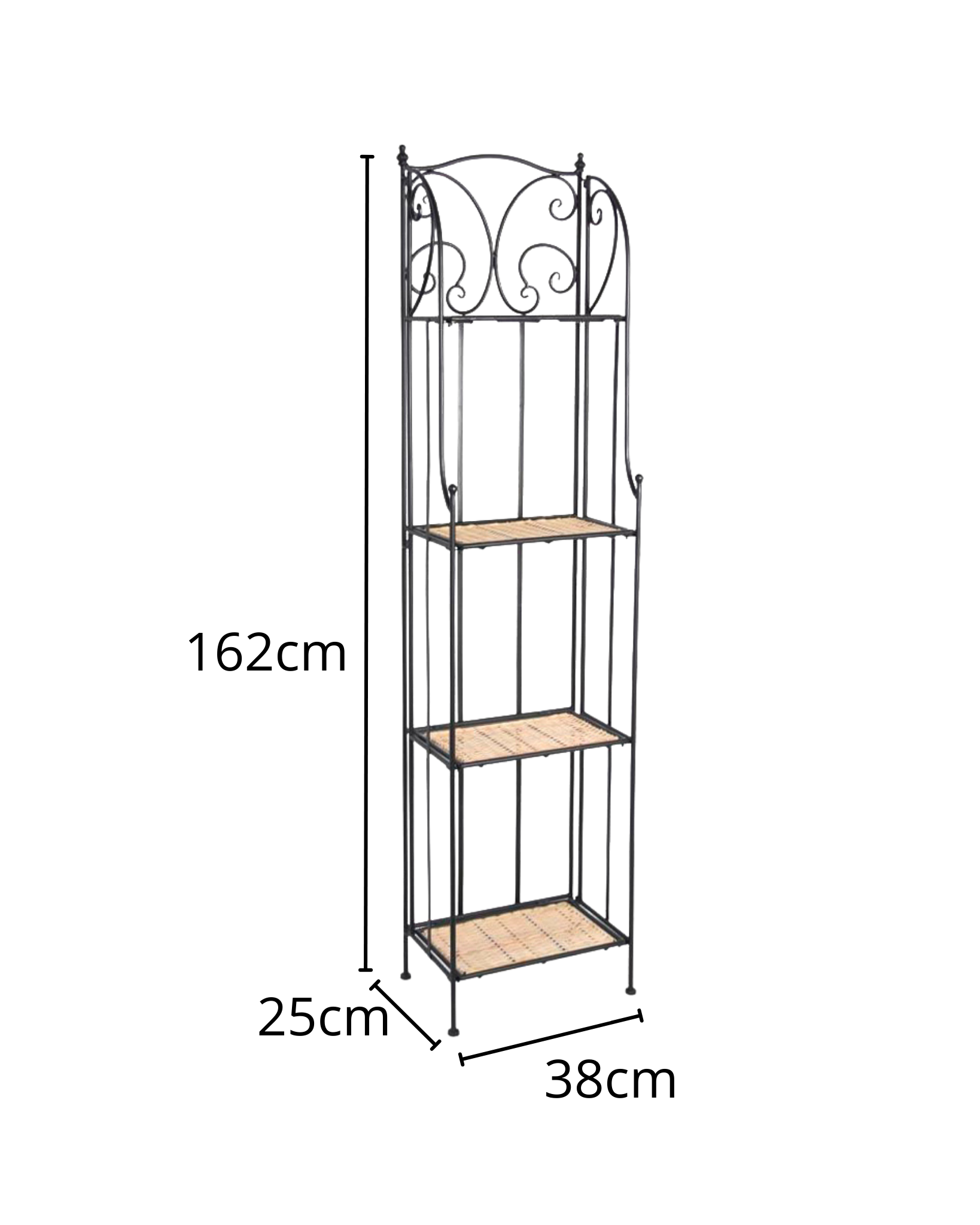 Aggiungi un tocco di charme esotico al tuo spazio con il nostro mobile aperto in ferro. Lo scaffale si distingue per gli elementi decorativi delle sponde e della cornice superiore, che conferiscono un carattere unico e affascinante. Le mensole dell’étagère sono realizzate in vimini, aggiungendo un effetto ottico dinamico e un tocco naturale all’arredamento. La struttura del mobile è solida e duratura, garantendo stabilità e resistenza nel tempo. È progettato per essere facile da pulire, rendendolo pratico per l’uso quotidiano. Inoltre, lo scaffale libreria è all’occorrenza richiudibile, offrendo flessibilità nell’organizzazione dello spazio.
