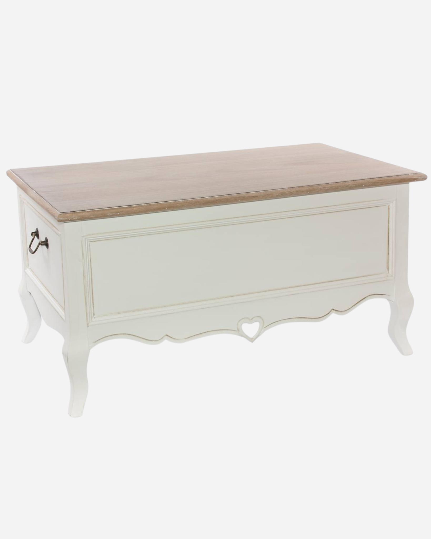 Questo elegante tavolino con contenitore cassapanca è il complemento ideale per chi cerca funzionalità e stile. Realizzato in legno di Paulownia offre una struttura resistente e durevole, perfetta per ogni ambiente della casa. Il top effetto legno aggiunge un tocco naturale e sofisticato, mentre la struttura bianca e il design classico si adattano facilmente a qualsiasi stile di arredamento.
