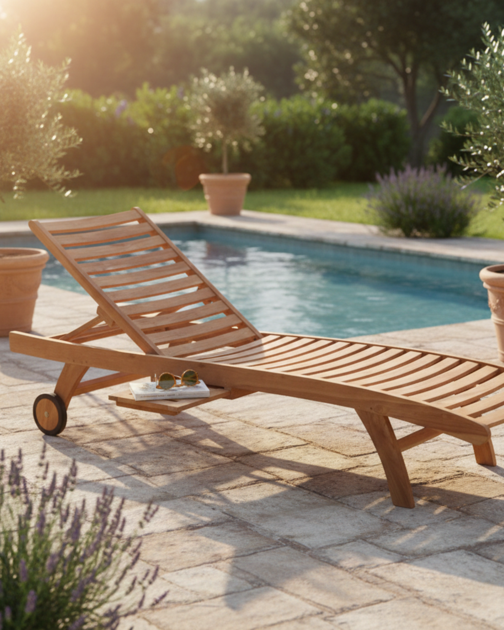 Il lettino prendisole in teak naturale “Horrison” è la scelta ideale per rilassarsi in giardino, terrazzo o a bordo piscina. Dotato di schienale regolabile, permette di trovare sempre la posizione più comoda per leggere o prendere il sole. Dispone inoltre di un pratico appoggio laterale estraibile da entrambi i lati, perfetto per riporre bevande, libri o accessori.