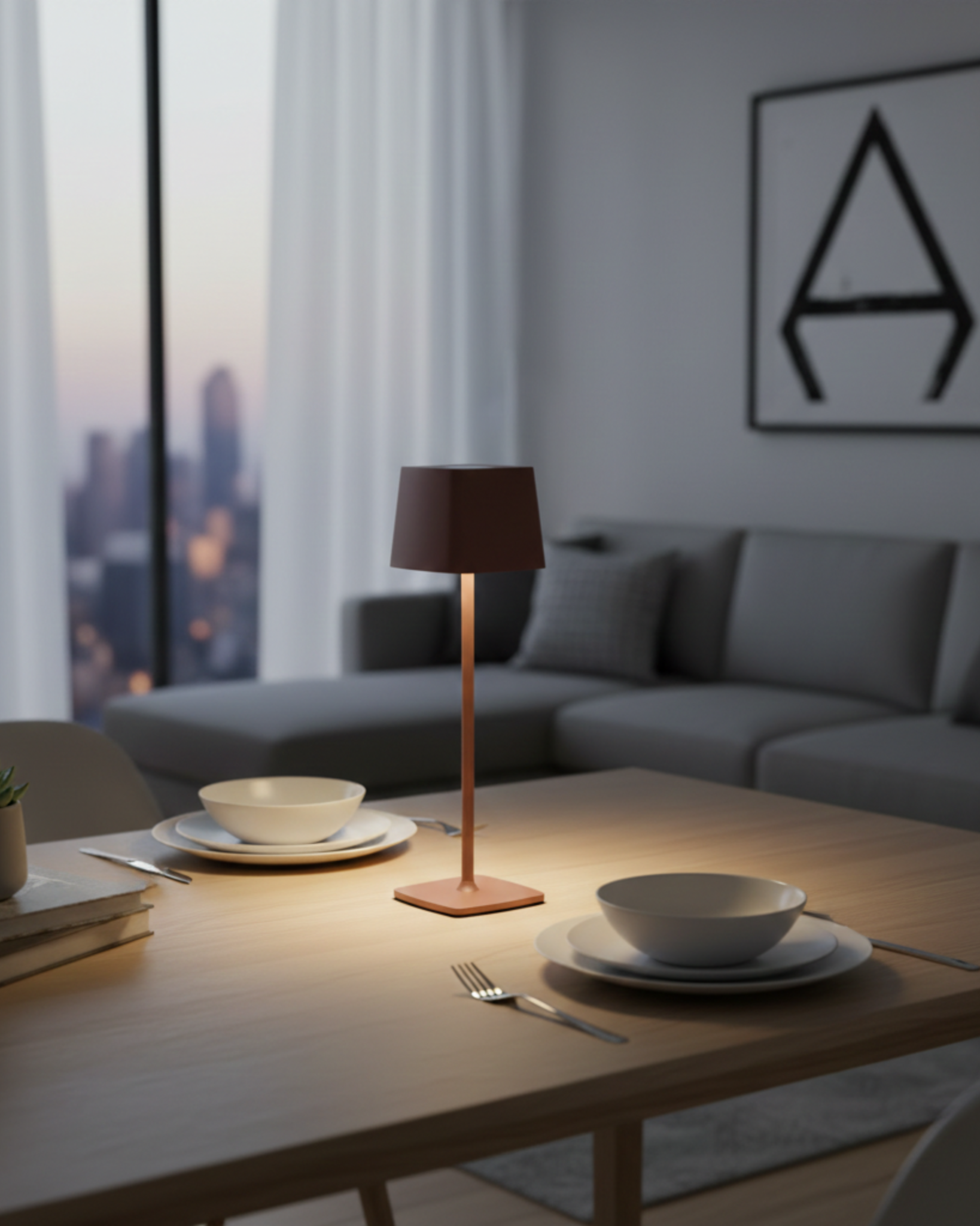 Lampada a led touch “Roma” marrone con 3 colorazioni luce